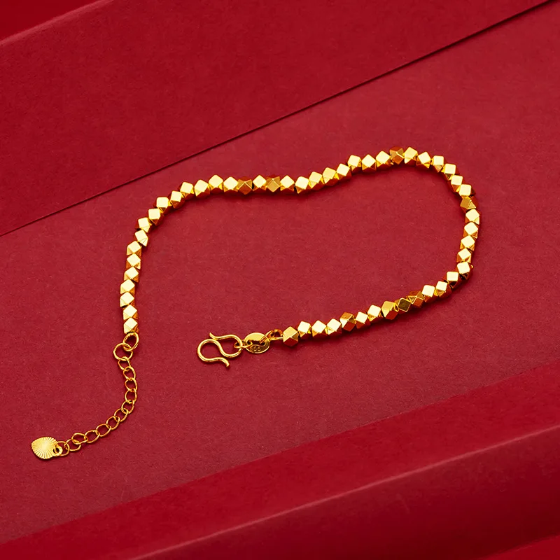 7 reviews for Real 18K Gold Chain Bracelet for Women Pure Adjustable Trendy Laser Beads Chain for Women Fine Jewelry Gift