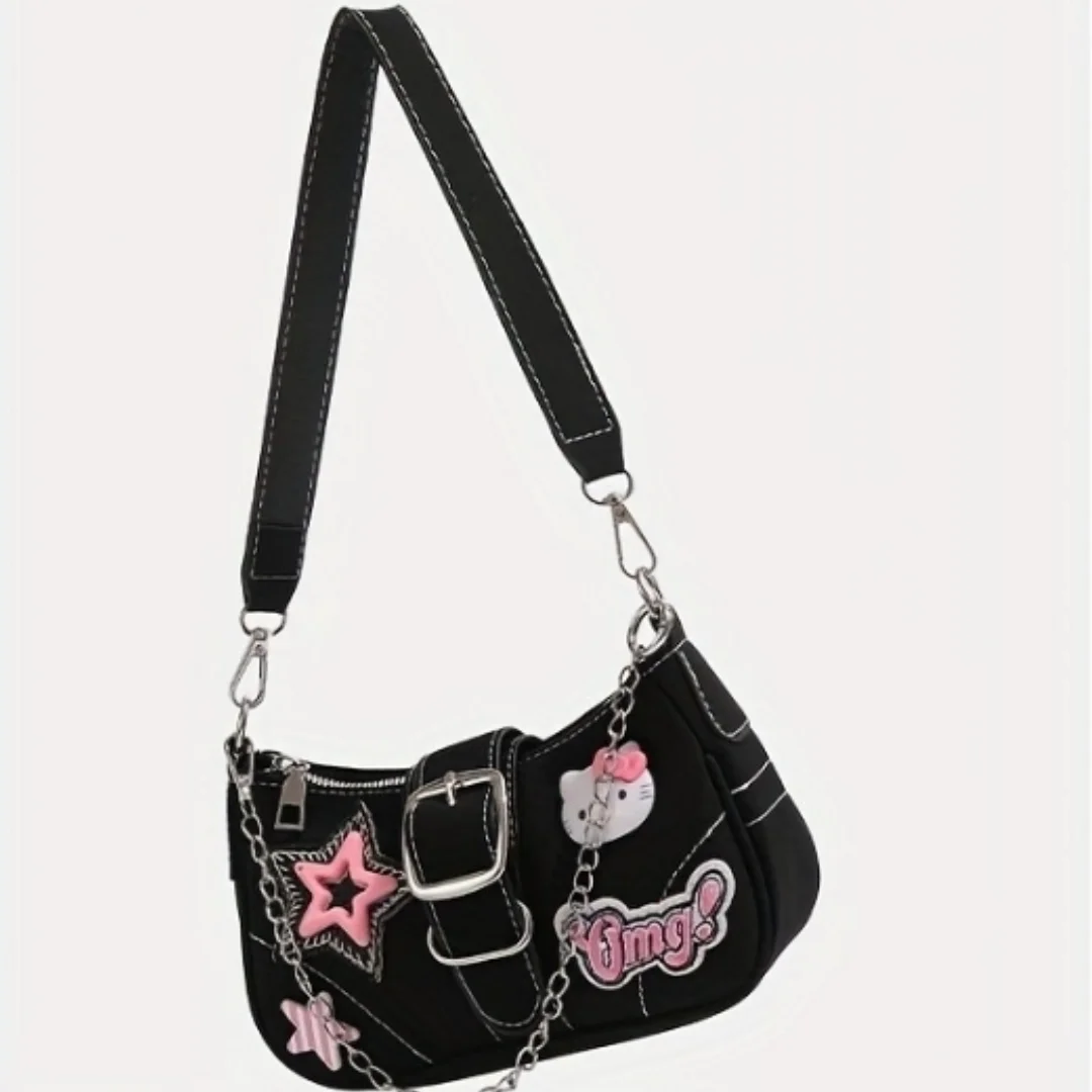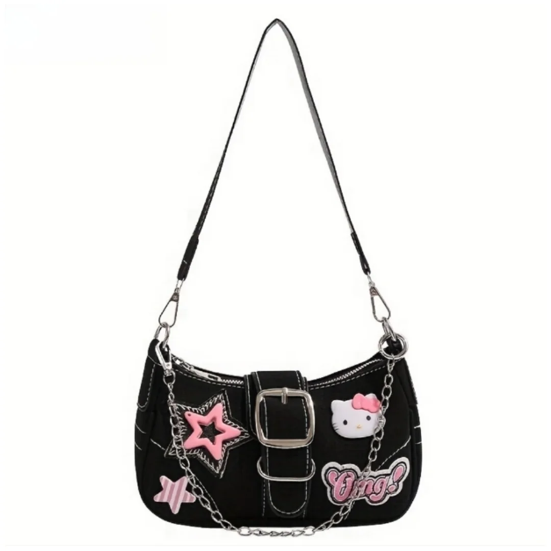 Sanrio'S New Women'S Shoulder Bag, a Millennial Spicy Girl Baguette Bag Featuring for hello kitty, a Cute Underarm Bag in Y2K Style.